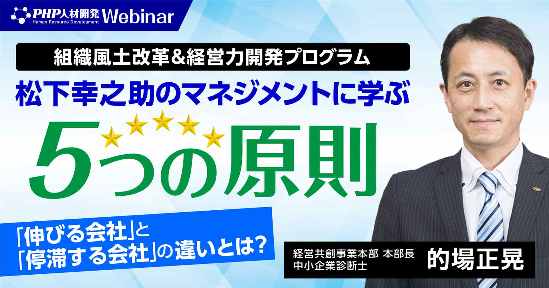 PHP研究所では、松下幸之助のマネジメント論を基に、個人の成長と組織風土改革を同時に進めるプログラムを開発しました。本動画では、経営者・マネジャー・若手社員向けの3つのプログラムについて詳しくご紹介します。