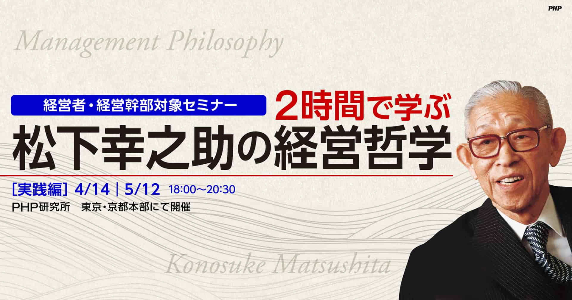 PHP研究所所蔵の貴重な映像や肉声を交え、松下幸之助の経営・人材育成・経営者の在り方を学ぶセミナーです。全体像をつかむ「入門編」と、「人づくり」「素直な心」を深掘りする「実践編」をご用意。終了後は軽食・ドリンク付きの交流会で、経営者同士のネットワークづくりや情報交換もしていただけます。