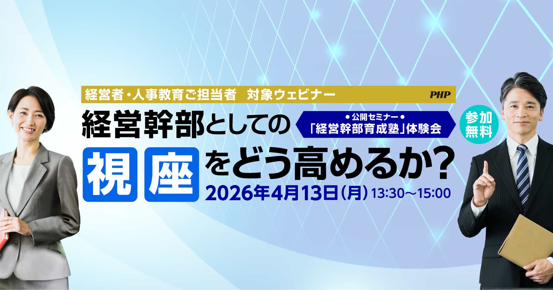 経営者、人材開発担当者を対象にしたPHP研究所のウェビナー・イベントをご案内します。これまでに実施し、好評のウェビナーもオンデマンドで視聴できますので、ぜひお申し込みください。