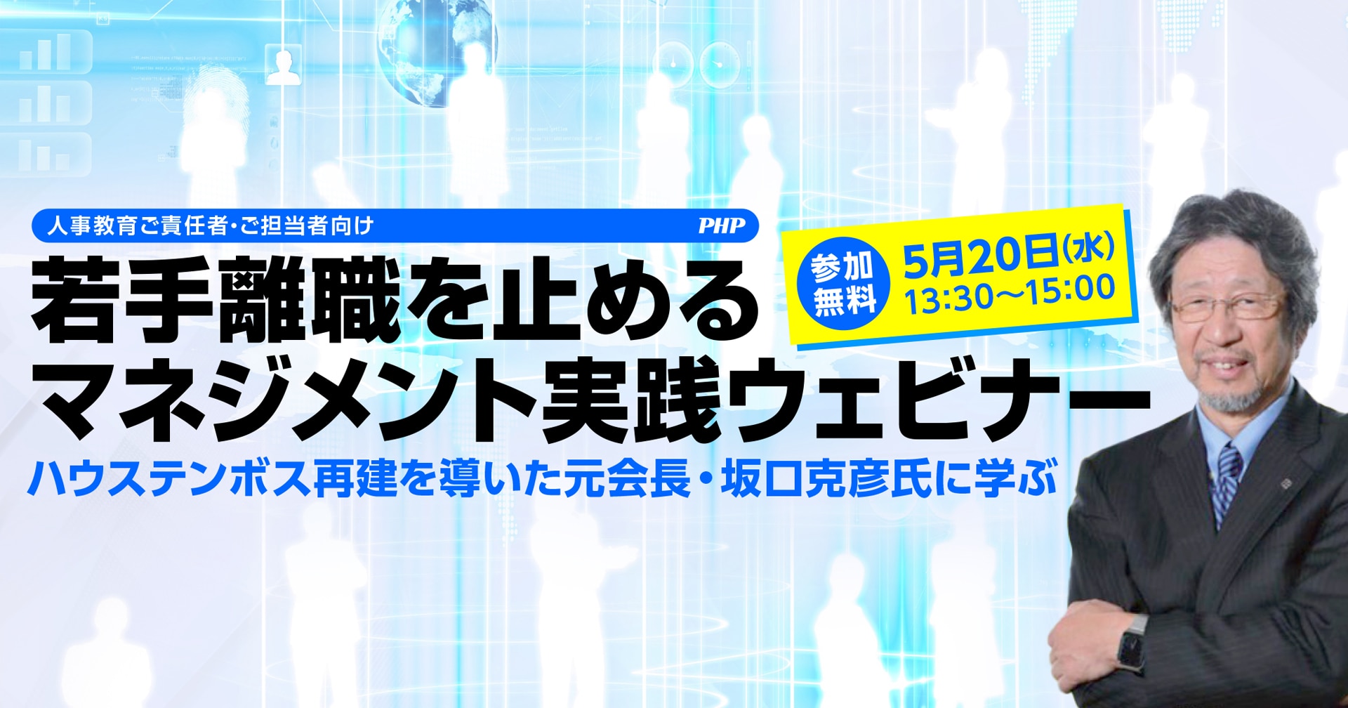 ユニ・チャームで人事・経営の中枢を担い、その知見をもとにエイチ・アイ・エスやハウステンボスの組織変革を推進した坂口克彦氏が登壇。若手の主体性を引き出す「納得感マネジメント」と離職率改善への取り組みを解説します。