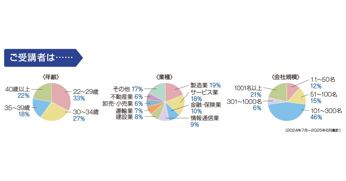 主任クラスの昇格時研修、フォロー研修に、多くの企業・団体の中堅社員の方が受講されています。